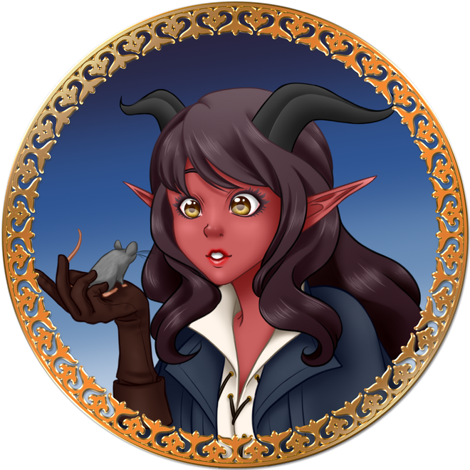 Nephysia is a sly cheerful tiefling from the port town of Westwick. Abandoned as a child, she took to picking locks and pockets to get by. After a lengthy stint in a gang of non-humans, she set off once again on her own shortly after reaching adulthood. She's a bit of a klutz, but is quick enough on her feet to help get herself out of most situations. She's rarely seen without her beloved pet rat, Percival.