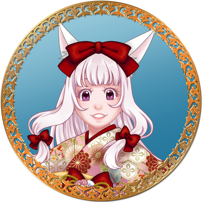 A cheerful and beautiful young woman from Shirayama who wields a katana. Known in Algard as Shirayama no Utahime or The Shirayaman Songstress, Tomoko weaves her spells into her music, specializing in arcane healing and select occult rituals.Her true form is that of a young kitsune with pale pink hair that reaches her knees.Tomoko left her quiet hometown of Takakawa at the age of 23, chasing after her beloved Mordecai after he disappeared in the night. Her travels brought her across Algard, across the Nyrean Ocean, to the unknown lands of Eviolosk.After her adventures in Eviolosk alongside numerous companions who were each legendary in their own right that lead to the dissolution of the Veil, Tomoko and Mordecai got married and started a family as they traveled across Eviolosk and Algard spreading the stories of their adventure. Some time later, Tomoko was granted the title of Saint by the newly renewed goddess Lissim for everything she had done in her service both before and since the fall of the Veil.