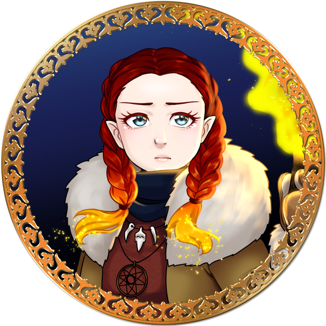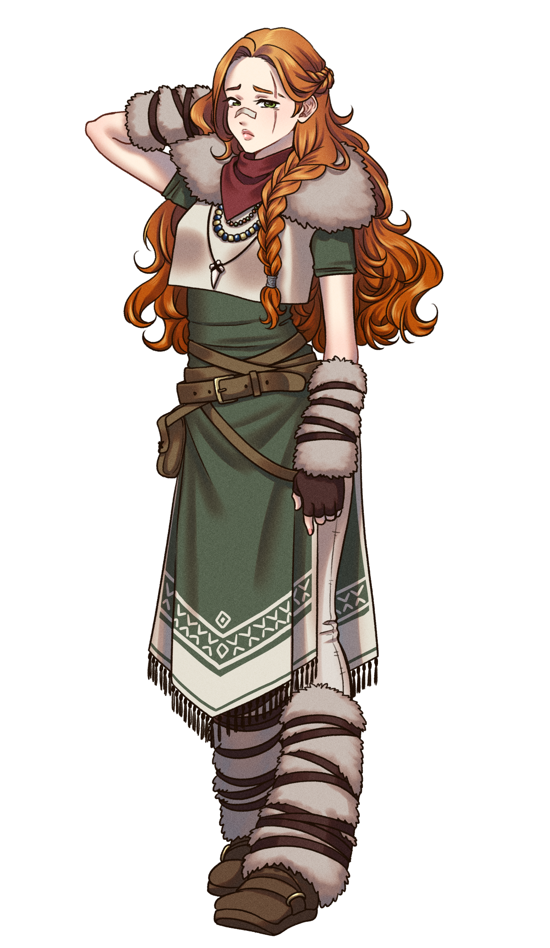 Where Luka came from is a mystery. One day, a white wolf appeared on the outskirts of the frozen village of Fravayak carrying a flame-haired infant bundled up in her jaws. The child was adopted and raised by the village shaman, Ilioka, and grew into a quiet but bright young girl.Despite her young age, Luka is a talented hunter alongside her wolf companion, Kaia. She tends to keep to herself, but is respectful of her elders and the traditions of the village.